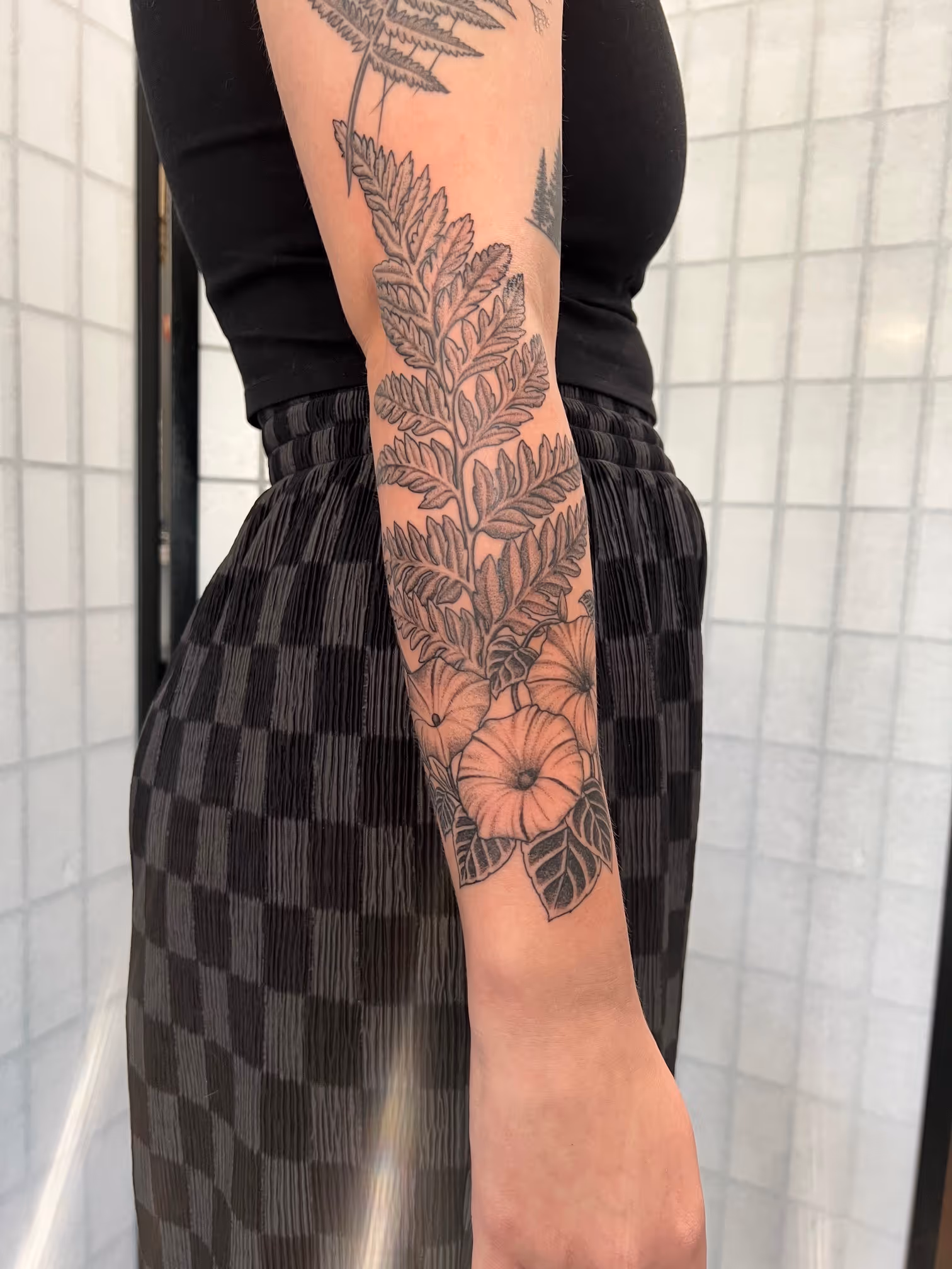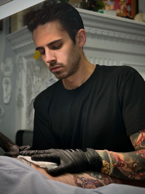 Marco began working in a tattoo shop as an apprentice in 2012 and has been tattooing full time since 2014. Over the ten+ years of work he has learned from professional tattooers, graffiti writers and art professors alike. He since has focused his work on the main three styles of fine line black and grey, classic American, and Japanese style motifs.